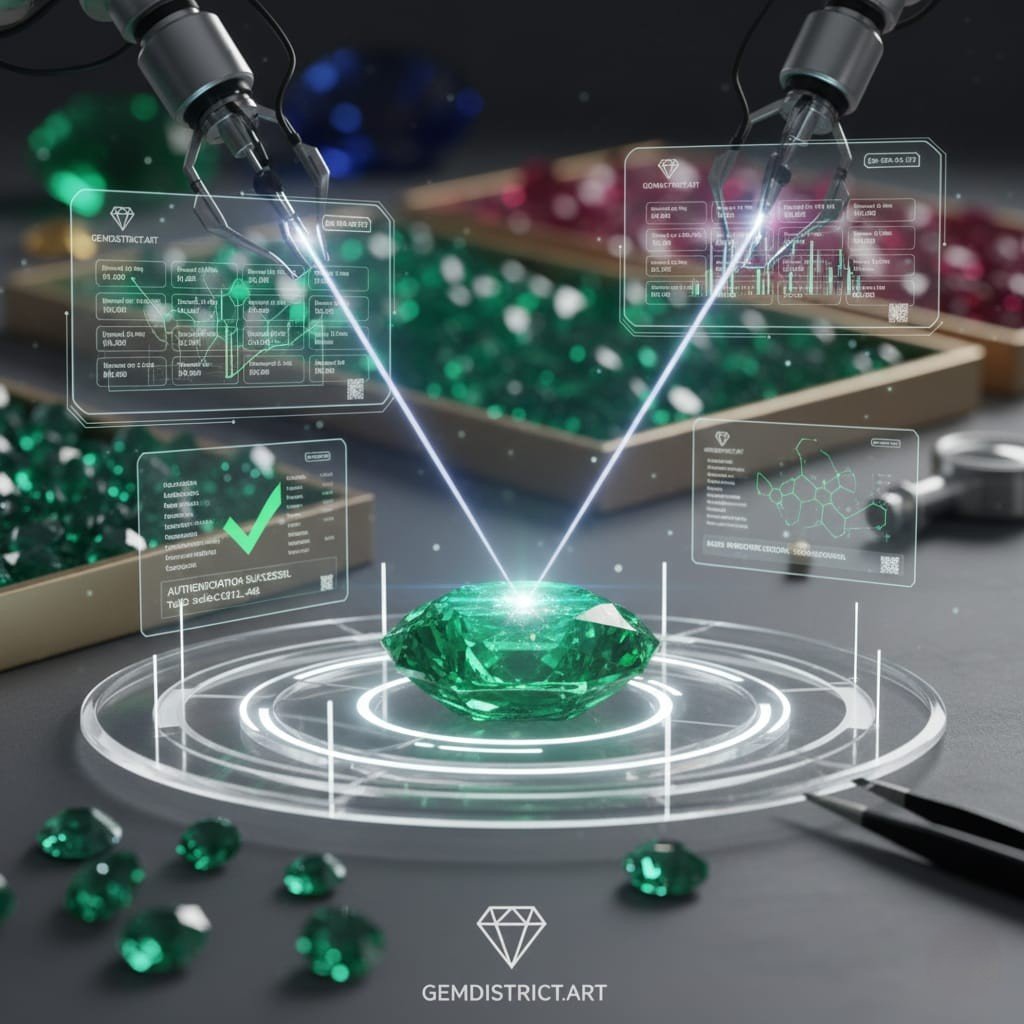 Each gemstone comes with a digital certificate of authenticity verified through blockchain technology.